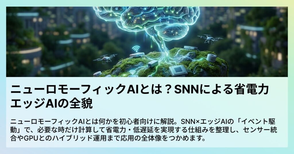 ニューロモーフィックAIとは何かを初心者向けに解説。SNN×エッジAIの「イベント駆動」で、必要な時だけ計算して省電力・低遅延を実現する仕組みを整理し、センサー統合やGPUとのハイブリッド運用まで応用の全体像をつかめます。