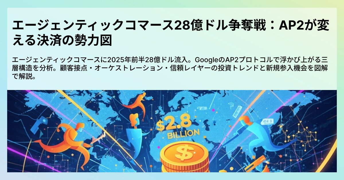 エージェンティックコマースは、もはや遠い未来の話ではありません。2025年前半だけで28億ドルの資金が流れ込み、GoogleやPayPalのような巨大プレイヤーが標準化に動き、スタートアップが実証実験を加速させている今、日本企業が様子見を続けるのはリスクが大きすぎると私は感じています。