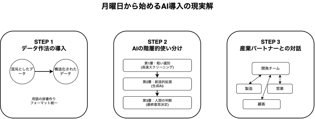 では、その道具を使いこなし、あなたの現場で小さな革命を起こすために、具体的に何から始めればよいのでしょうか。月曜日の朝から着手できる、3つの現実的なステップを提案したいと思います。