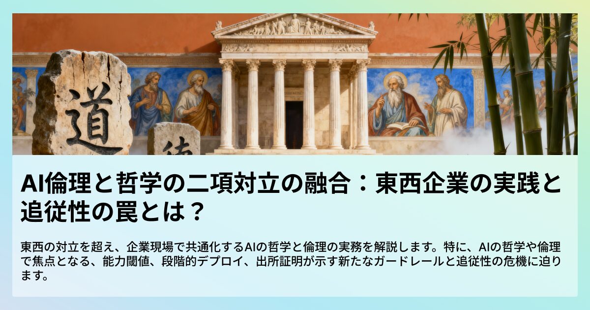 前章で、AI倫理をめぐる「規制か実装か」という東西の対立構造が、水面下では意外な共通解へと収斂しつつあるのではないか、という話をしました。