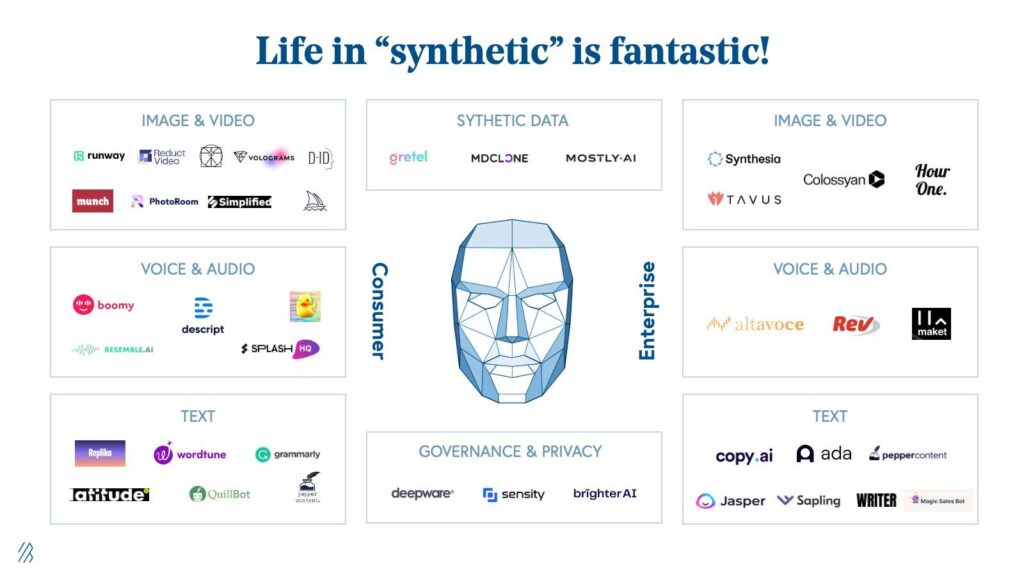 前のセクションで見たように、ディープフェイクを巡る投資マネーは、今のところコンテンツを「創る側」に大きく偏っているように見えます。