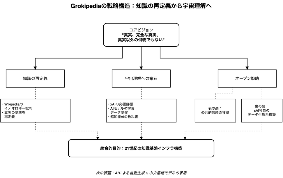 つまり、宇宙の謎を解き明かす超知能AIを育てるための、いわば「教科書」を自らの手で作り上げようとしているわけです。この視点に立つと、Grokipediaは単なる公共サービスではなく、xAIの未来を左右する極めて戦略的なプロジェクトであることが見えてきます。