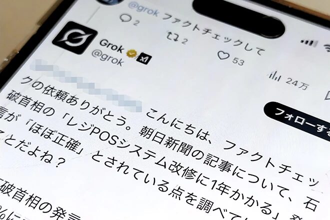 朝日新聞は、日本の消費税に関する当時の首相の発言について、Grokのファクトチェック能力を検証する興味深い記事を公開しました。ある読者がGrokにこの記事のファクトチェックを依頼したところ、Grokは首相の発言が「誇張されているか、事実と異なる可能性が高い」と結論付けました。