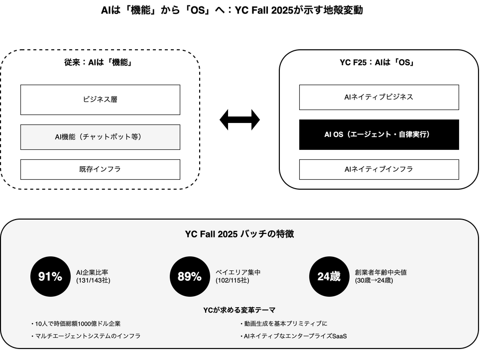 AIは「ツール箱の中の一つの道具」ではなく、「家を建てるための基礎」になった。YC F25が突きつけるこの現実を前に、私たちは変化に適応していかなければなりません。