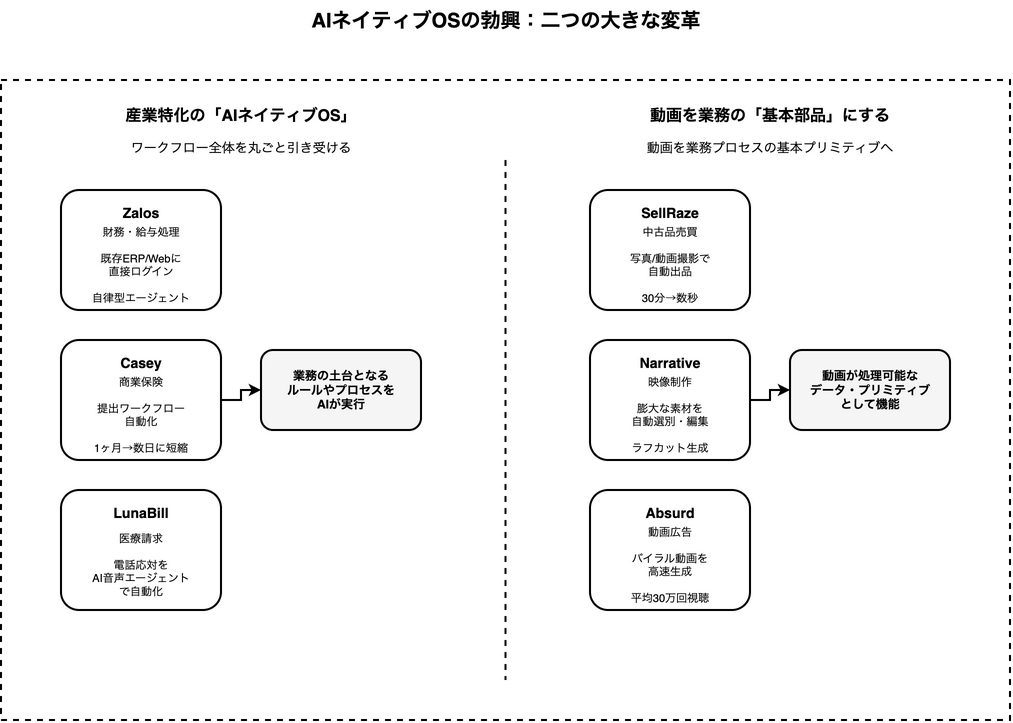 次のセクションでは、この地殻変動を具体的に体現するスタートアップたちが、産業の現場でどのような「AIネイティブOS」を構築しようとしているのか、その最前線を詳しく見ていくことにしましょう。