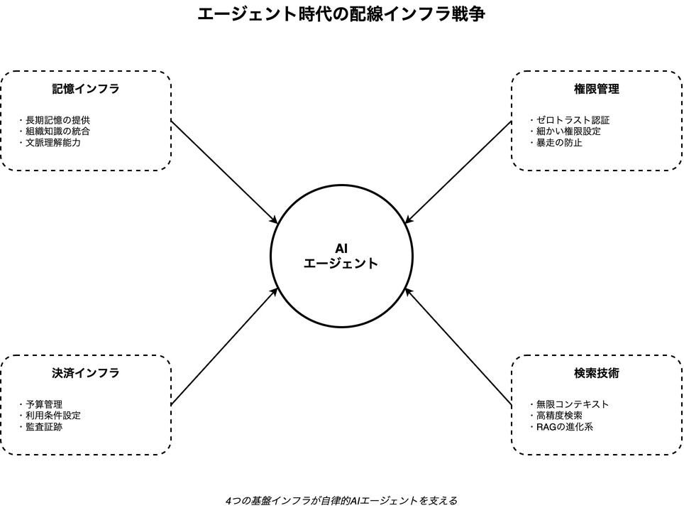 エージェント時代の“配線”を制する者たち:記憶・権限・決済・監視の新インフラ戦争